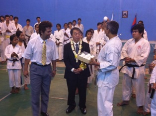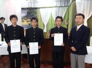 | 2012年5月23日(水)青少年育成事業 優秀者表彰 表彰事項 『全国中学生選抜空手道選手権栃木県大会団体戦準優勝』 表彰対象者 高橋和輝君、高橋昴輝君、小林大悟君 |