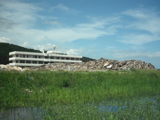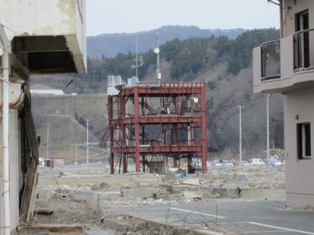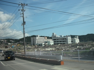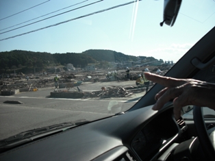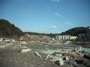 | 南三陸町の様子。ボランティアの方々も、多く見られ、がれきが大きな山になっていました。 |