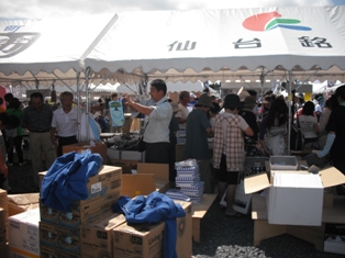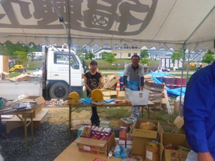 | 8月28日(日)第5回南三陸町福興市に葛生ライオンズクラブ支援物資を持って参加いたしました。個人にて、5月・7月に三陸町の友人・知人の支援に行ったとき、泊まる宿にて福興市実行委員長・