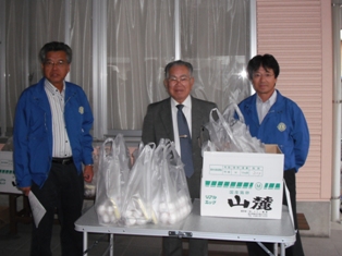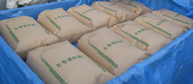 | 2012年6月26日(火)復興支援事業協力 牧町、農事組合法人MAGIファーム代表理事 石田憲一様より玄米10袋(300Kg)の寄付をいただきました。 |