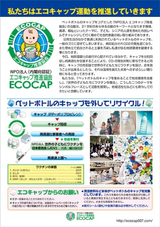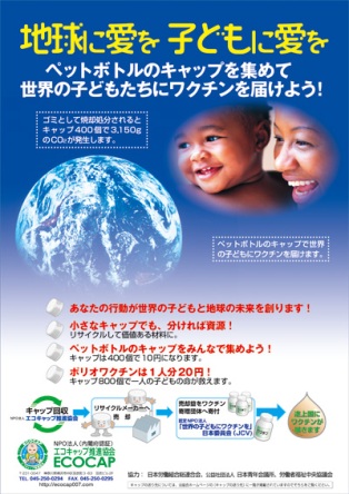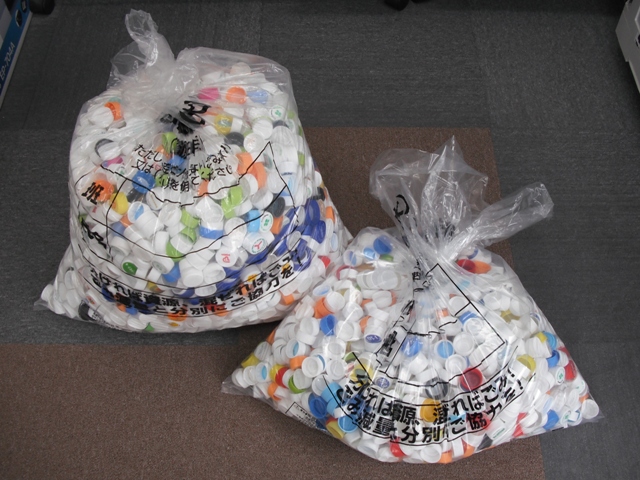 | 2012年2月15日(水) ペットボトルのキャップを集めてワクチンを(800個=1名分)運動に参加。 昨年7月より葛生ライオンズクラブで回収したエコキャップ(11kg約4400個)を333-B地区1Rに寄贈しました。 また、2月23日(木)にも、エコキャップ(11kg約4400個)が集まり333-B地区1Rに寄贈しました。合計(22kg) |