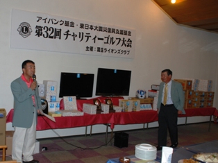 | 夏の日差しが照りつける中、恒例のチャリティーゴルフ大会が多くの参加者を迎えて、九月八日サンモリッツカントリークラブに於いて開催されました。本年度は、東北地方大震災復興支援基金を新たに設けさせていただき、アイバンク基金と共にチャリティー募金を募らせていただきました。趣旨に賛同し、多くの方々に参加いただきましたこと、改めて感謝申し上げます。震災から半年、まだ深く爪痕の残る被災地ですが、復興への力強い歩みが続けられています。私たちライオンズクラブも皆様のご協力を仰ぎながら、支援活動を継続してまいります。また、長年継続してまいりましたアイバンク活動へも、さらなるご理解と、ご協力を賜り、光を取戻す活動を続けてまいります。 今後もこのゴルフ大会がさらに楽しく、幅広い年齢層の方々に参加していただき、充実したチャリティー大会となりますよう企画してまいりますので、多くの皆様のご参加と御支援を心よりお願い申し上げます。 |