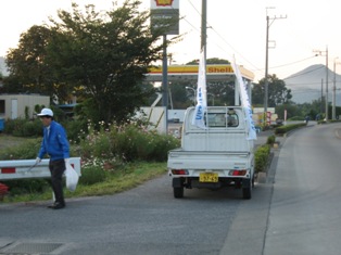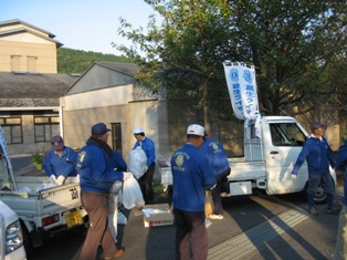 | 2011年9月25日(日)午前2:00出発 南三陸町“福興市”支援プロジェクト 第2弾 メンバー 春豊彦、石澤満、塩田彦之、土澤利彦、菊地豊樹、石澤洋子(6名) 運搬車両 ユニック付8tトラック(L石澤満) ワゴン車(L春 豊彦) 支援物資 中古軽トラック1台(L菊地豊樹 提供)、建築用金物類(近藤武之様 提供) もやし100袋(鰹繻エ園様提供)、新品スコップ5個(L野部俊之 提供)、日用品他1万円分(L関塚保雄 提供) |
