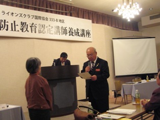 | 2011年11月13日(日) 薬物乱用防止教育認定講師養成講座 護国会館 6名参加 「ダメ。ゼッタイ!」という言葉を聞いたことがありますか?この言葉は、薬物乱用防止のスローガンです。この言葉を一人でも多くの方に知って頂けるよう、私達は活動しています。11月13日(日)護国会館にて「薬物乱用防止教育認定講師育成講座」が開催され、6名のメンバーで参加してきました。講座では、医学博士による基礎講座、栃木県警察本部や栃木県教育委員会や保健福祉部薬務課による専門講座等を受講し、薬物乱用と身体への影響や薬物犯罪等の現状、薬物乱用防止教育の現状等学びました。最近の傾向として薬物乱用の低年齢化が新聞、雑誌等の記事で取り上げられていますが私達は、この様な問題が一つでも防止でき、一人でも少なくなるよう、今日学んだ「ダメ、ゼッタイ。」という言葉と正しい知識を伝えていけるよう活動していきたいと思っています。今回「薬物乱用防止教育講師」に認定されたメンバーはL関塚保雄・L山菅直己・L田名網学・L塩田彦之・L野部俊之・L橋本真一です。 教育スポーツ・薬物乱用防止委員長 野部俊之 |