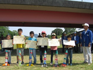 | 5月27日(日)あくとプラザ横秋山川河川敷において、ペットボトルロケット製作・打上大会を行いました。当日は汗ばむくらいの晴天の中、まずは親子そろって、ペットボトルロケットの製作を行いました。ペットボトル5本使用し、皆さん一生懸命造っていました。完成品には色々な装飾を施し、見た目も綺麗でかっこいいペットボトルロケットが完成しました。大会では、飛行距離とは別に、ロケットの出来栄えや装飾のオリジナル性で3名の方を表彰しました。お昼は、エクボの会と青藍泰斗の高校生が造ってくれたカレーを頂きました。美味しかったです!有難うございました。 午後からは場所を河川敷に移動し、いよいよ打上大会です。青空に向かい、颯爽と飛び立つロケット。なかなか思うとおり飛ばないロケット。いろいろありましたが、皆さん色々工夫し、今回の最高飛行距離は131メートルでした。笑顔一杯楽しいでペットボトルロケット製作・打ち上げ大会でした。 最後になりましたがこの大会を開くに当たりまして佐野市教育委員会様・青藍泰斗高校様・葛生ジュニアリーダースクラブ様・エクボの会様に大変ご協力頂き、厚くお礼申し上げます。(